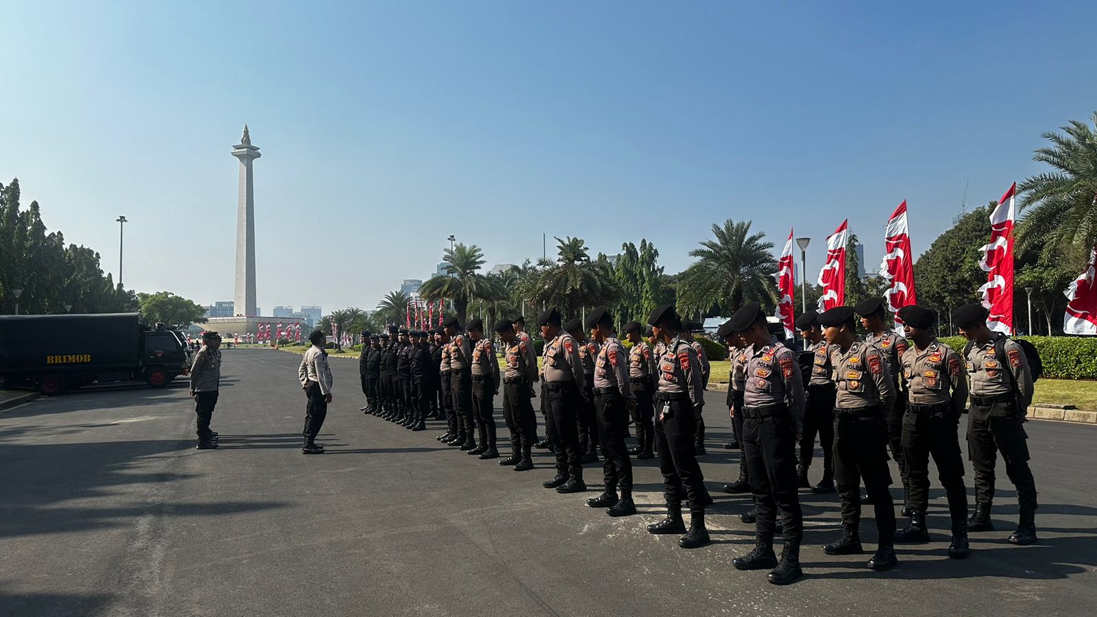 Apel ini digelar sebagai langkah antisipatif untuk memastikan situasi tetap kondusif selama berlangsungnya unjuk rasa. Sebanyak 125 personil gabungan Polda Metro Jaya, Brimob dan Polsek Metro Gambir terlibat dalam pengamanan.