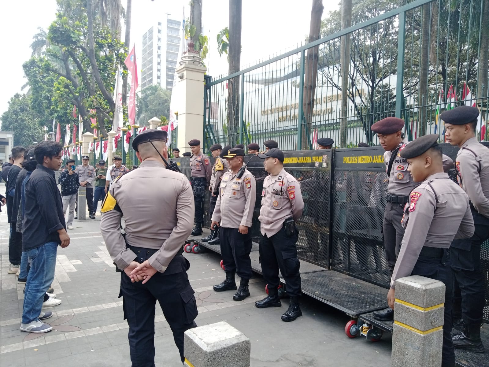 Selesai apel personel di standby kan diobjek untuk monitoring dan menunggu massa yang datang, ucap Manjaya. Pengamanan terdiri dari Polda Metro Jaya, Polres Metro Jakarta Pusat dan Polsek Metro Tanah Abang.