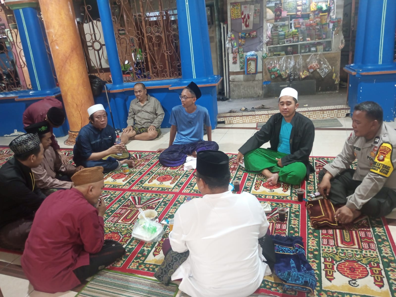 Selanjutnya di lakukan sambang di masjid dengan maksud dan tujuan silaturahmi Kamtibmasy dan memastikan warga aman nyaman dalam pelaksanaan beribadahnya
