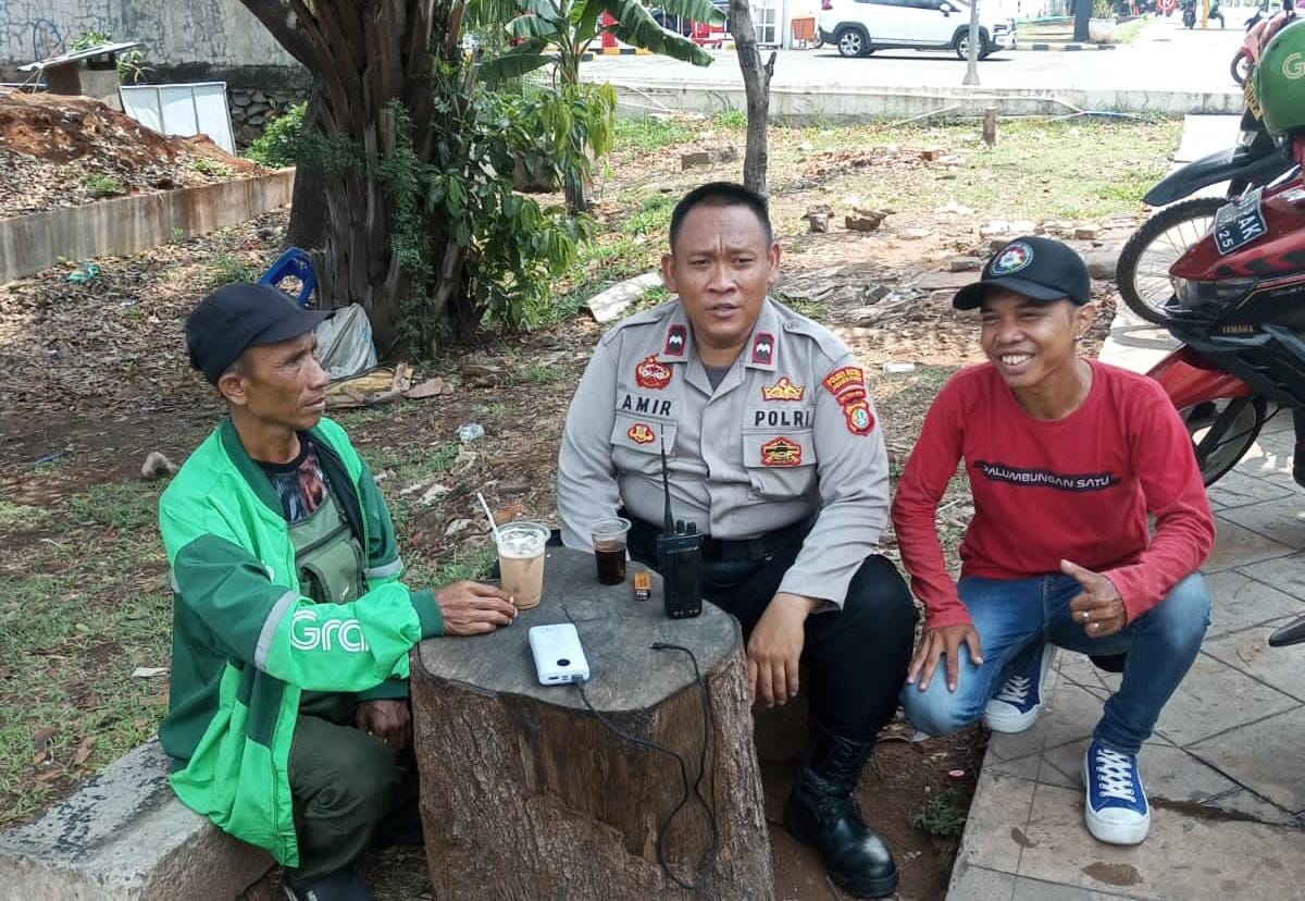 Panit Sabhra Polsek Cempaka Putih Aipda Amir Riswanto melaksanakan patroli dialogis ke ojek online di Jalan Ahmad Yani Cempaka Putih Jakarta Pusat. Kamis (26/9/2024)