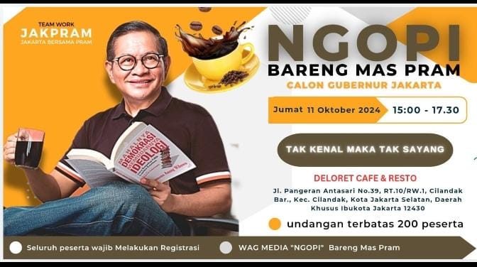 Ngopi bareng mas Pram calon gubernur jakarta diadakan di Jalan pangeran Antasari No.39 Rt/Rw 10/01 Cilandak Barat kecamatan Cilandak Jakarta Selatan. Jum at 11 october 2024.