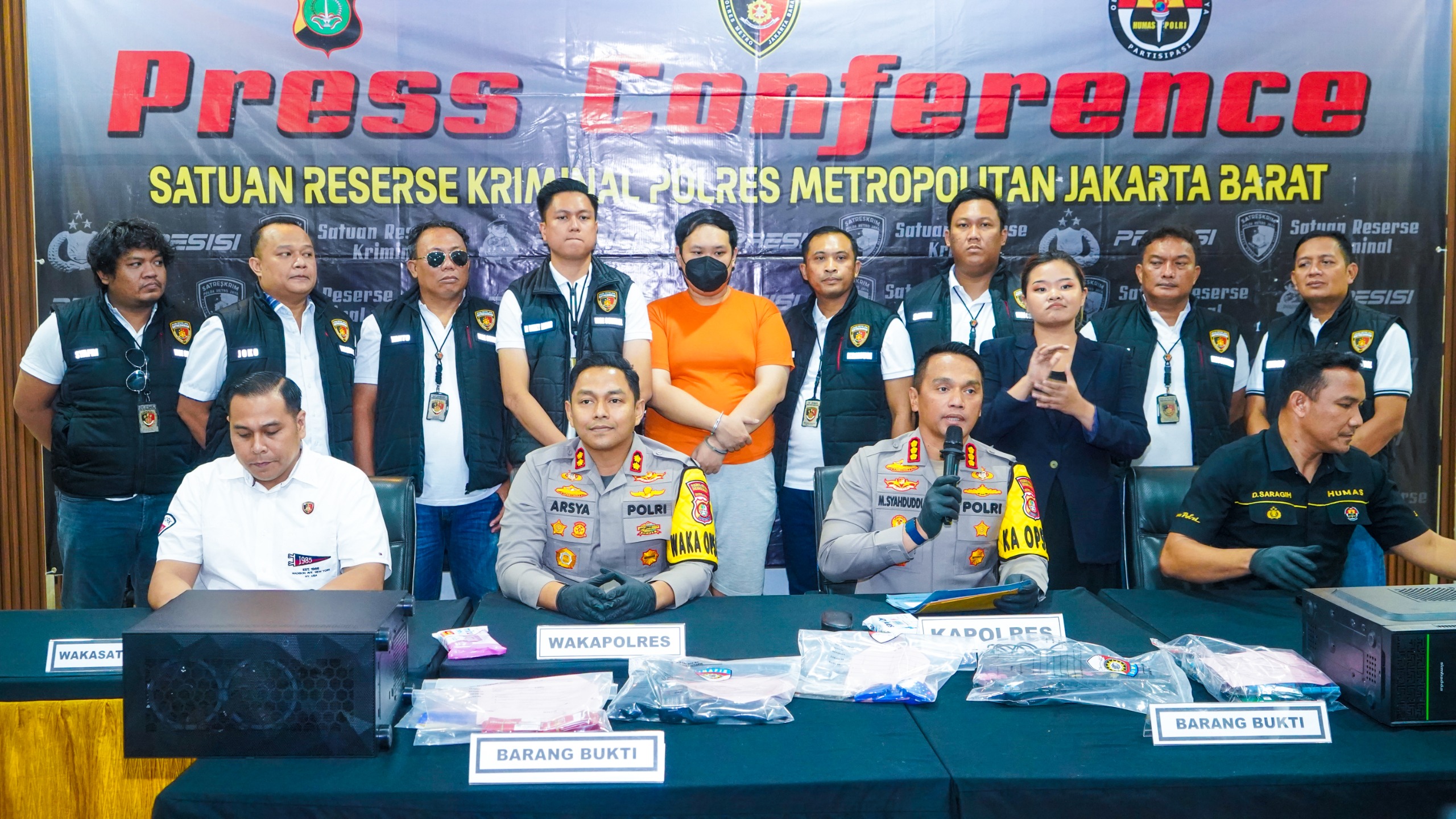 Kapolres Metro Jakarta Barat, Kombes Pol M. Syahduddi didampingi Waka Polres Metro Jakarta Barat, AKBP Teuku Arsya Khadafi dan Wakasat Reskrim Kompol Muhammad Kukuh Islami, dalam konferensi pers yang digelar di Mapolres, memaparkan kronologi dan hasil penyelidikan yang dilakukan oleh tim gabungan dari Satreskrim Polres Metro Jakarta Barat dan Unit Reskrim Polsek Kebon Jeruk.