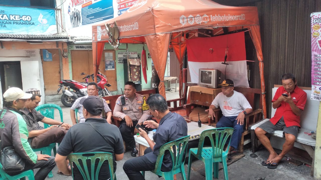 Bhabinkamtibmas Kelurahan Gunung Sahari Selatan Aipda Mahajin melaksanakan kegiatan Sambang dan Patroli Dialogis bersama 3 pilar di Jalan Angkasa Dalam RW 03 Kelurahan Gunung Sahari Selatan Kecamatan Kemayoran Jakarta Pusat. Jumat (4/10/2024).