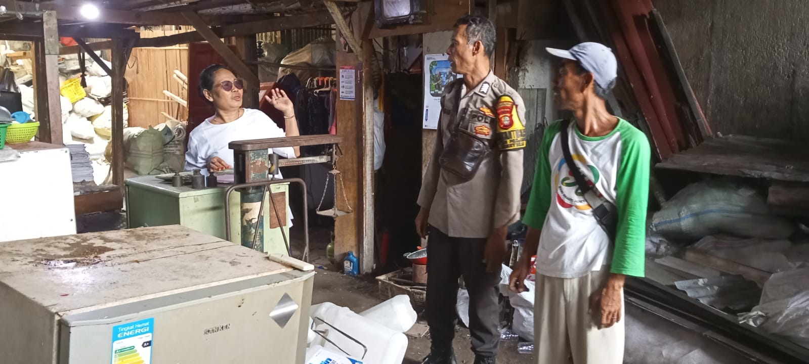 Jakarta Bersahabat | Bhabinkamtibmas Kelurahan Utan Panjang Bripka Kosim melakukan kegiatan Patroli Dialogis serta dialog dengan warga di UMKM Jalan Haji Ung RT 01 RW 05 Kelurahan Utan Panjang Kecamatan Kemayoran Jakarta Pusat. Minggu (22/9/2024).