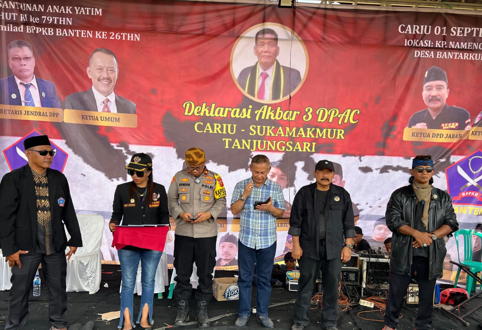 jakartabersahabat.com // Acara deklarasi Akbar BPPKB Banten 3 DPAC, antara lain DPAC Cariu, DPAC Sukamakmur dan DPAC tanjung sari diadakan di wilayah Jonggol kabupaten Bogor Jawa Barat. Minggu 01 September 2024.