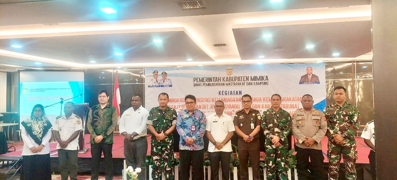Perkokoh sinergitas, Dandim 1710/Mimika Letkol M. Slamet Wijaya, S.Sos,.M.Han, M.A menghadiri kegiatan Peningkatan Kapasitas Lembaga Kemasyarakatan Desa/Kelurahan, Lembaga Adat dan Hukum Adat yang digelar oleh Dinas Pemberdayaan Masyarakat dan Kampung (DPMK) Kab. Mimika bertempat di Lt. 5 Ball Room Horizson Diana, Jl. Budi Utomo Distrik Mimika Baru Kab. Mimika, Rabu (02/07/2025).