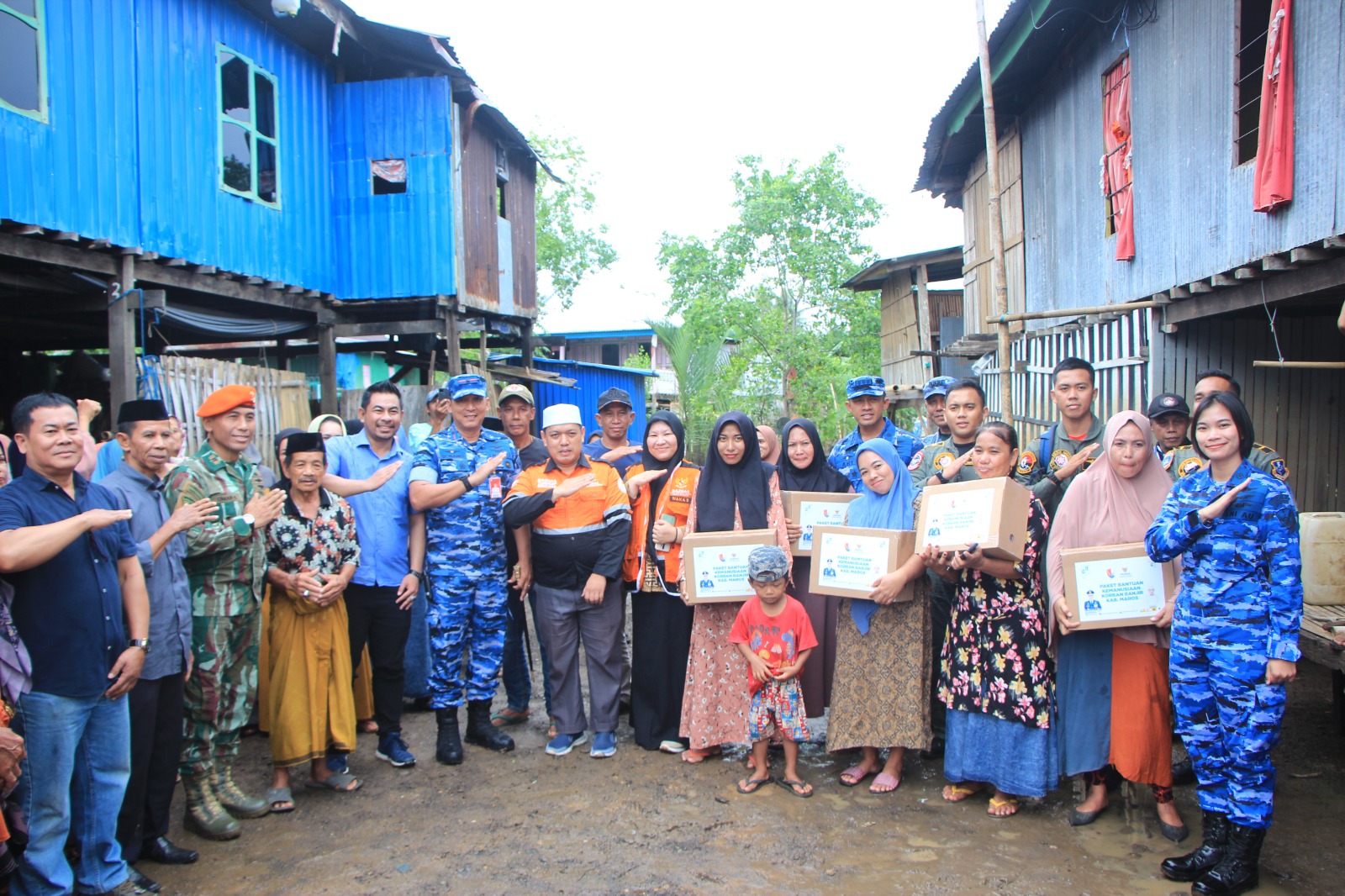 Makassar | Komandan Lanud (Danlanud) Sultan Hasanuddin Marsma TNI Bonang Bayuaji G., S.E., M.M., CHRMP., memberikan bantuan ratusan paket sembako kepada masyarakat yang terdampak banjir di wilayah Kabupaten Maros, khususnya di Kelurahan Bontomate’ne Kecamatan Marusu, Kabupaten Maros, Minggu (29/12/2024).