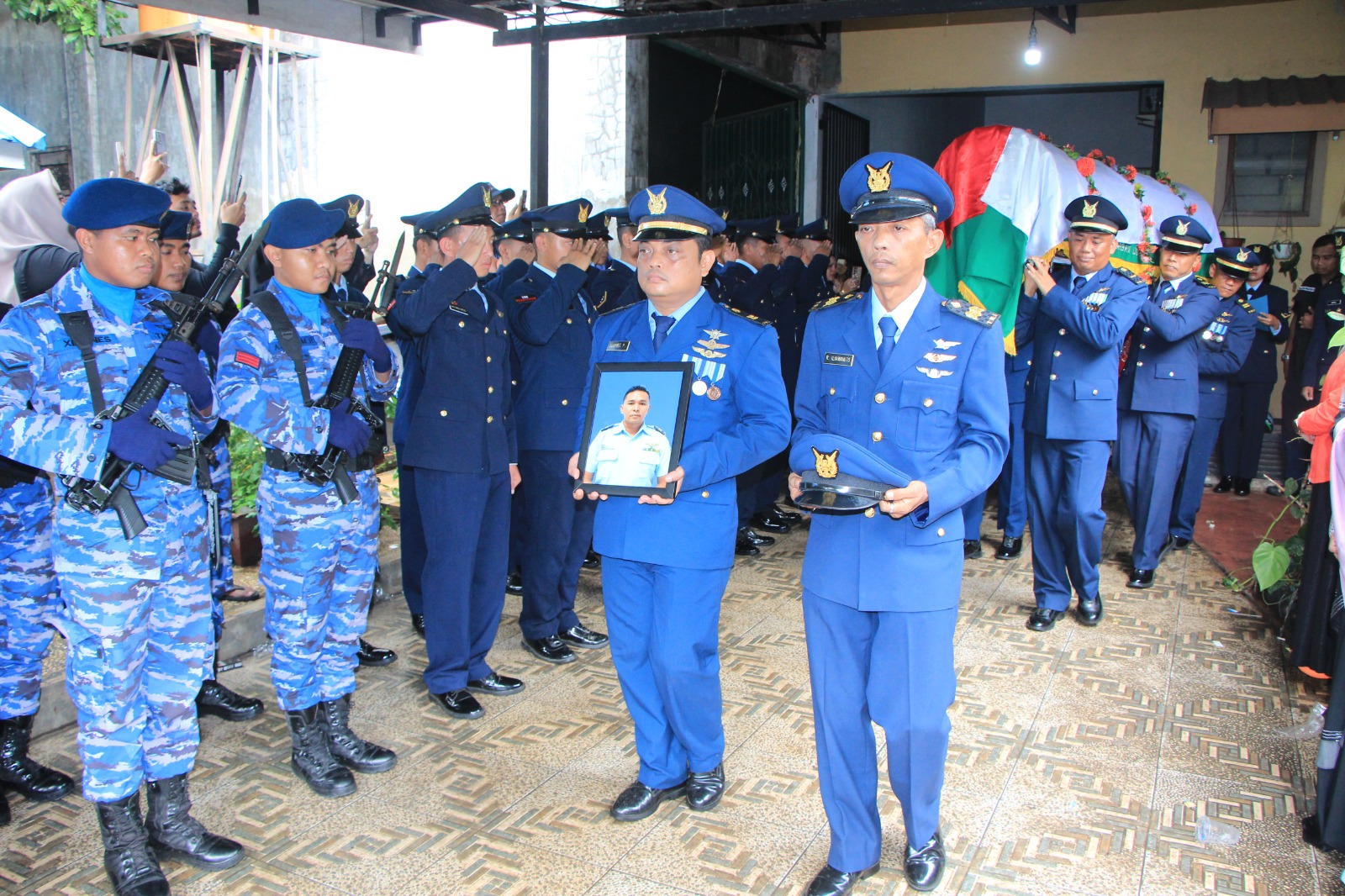 Prosesi upacara pemakaman dimulai dengan penghormatan militer, pembacaan riwayat hidup almarhum, dan ditutup dengan doa. Seluruh peserta upacara tampak larut dalam kesedihan, mengenang jasa dan pengabdian almarhum selama bertugas di TNI AU.