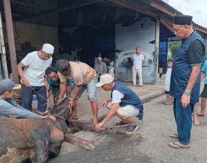 jakartabersahabat.com : Dalam menghadapi Idul Adha di tahun 2024 ini Bapak Drs. H. Margono MM berkurban sebanyak 11 ekor sapi dengan jumlah warga yang akan dibagikan sebanyak 400 orang sekitar jalan pembangunan zipur helvetia. Senin pagi, 17/06/24 warga sekitar 30 orang secara bergotong royong bekerjasama mulai dari penyembelihan sampai pembagian daging kurban dilakukan dengan cermat.