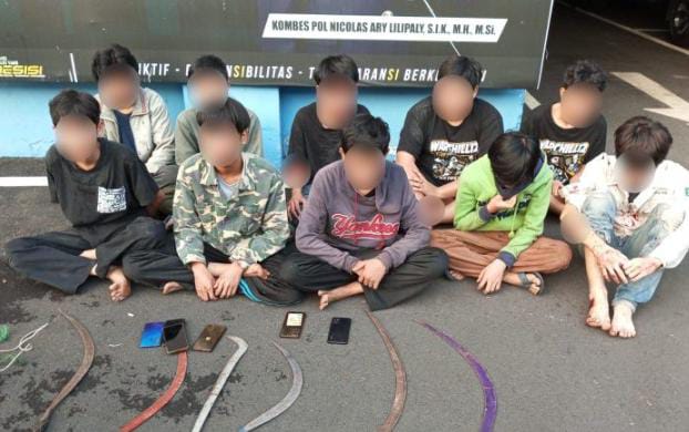 Mereka yang diamankan, diantaranya inisial MF (17) memegang celurit, ANU (16), MFH (15), N (16) memegang Sajam, N (16), R (16) memegang Sajam, A (14), RZ (16) memegang Sajam, ZD (19), dan EWW (15) memegang Sajam.
