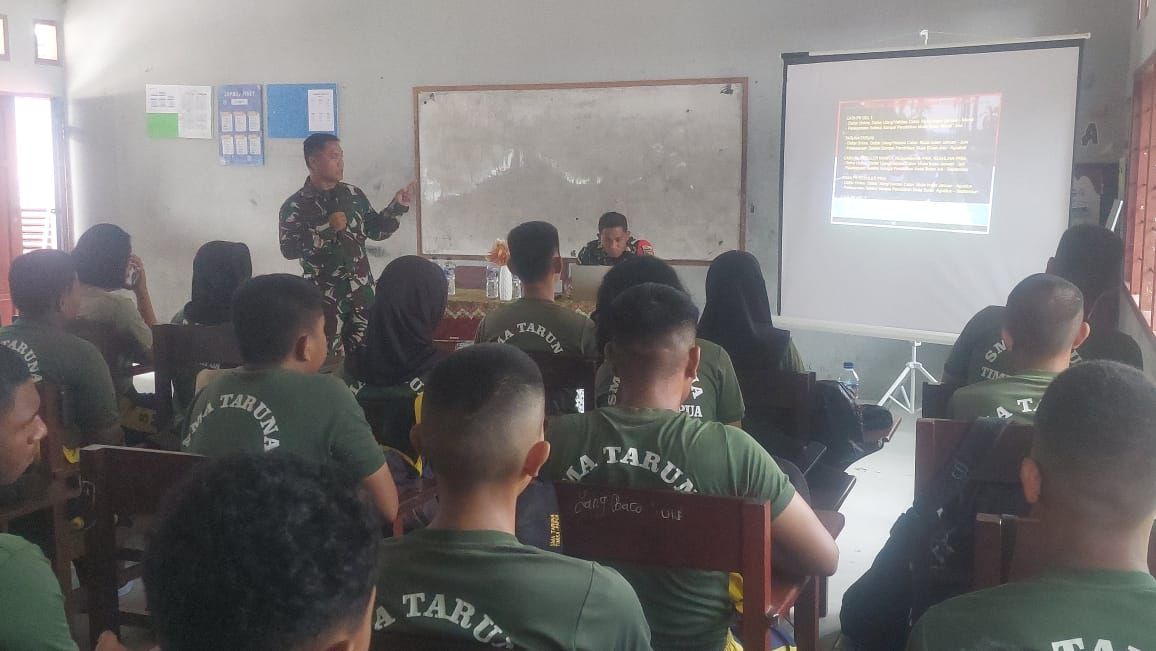 Danramil 1710-02/Timika Kapten Inf Helly Sukmajaya, memberikan sosialisasi terkait penerimaan calon prajurit TNI Angkatan Darat (AD) kepada siswa-siswi SMA Taruna Timika. Kegiatan sosialisasi digelar di Aula Sekolah SMA Taruna Timika, Distrik Wania, Kabupaten Mimika, Sabtu (25/01/2025).