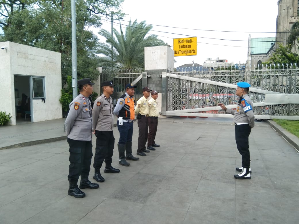 Jakarta Bersahabat com | Kanit Propos Ipda Budi Siagian melaksanakan apel gabungan bersama unsur Tiga Pilar di halaman Masjid Istiqlal Pasar Baru Sawah Besar Jakarta. Selasa (01/10/2024)