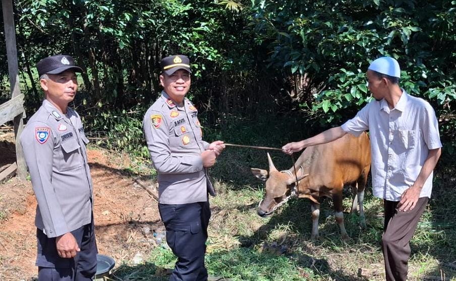 Kamis, 5 Juni 2025 – Dalam rangka memperingati Hari Raya Idul adha 1446 Hijriah, Kapolsek Nanga Tayap, IPTU Bagus Tri Baskoro, S.H., M.Si., menyerahkan bantuan hewan kurban berupa dua ekor sapi kepada masyarakat di wilayah Kecamatan Nanga Tayap.