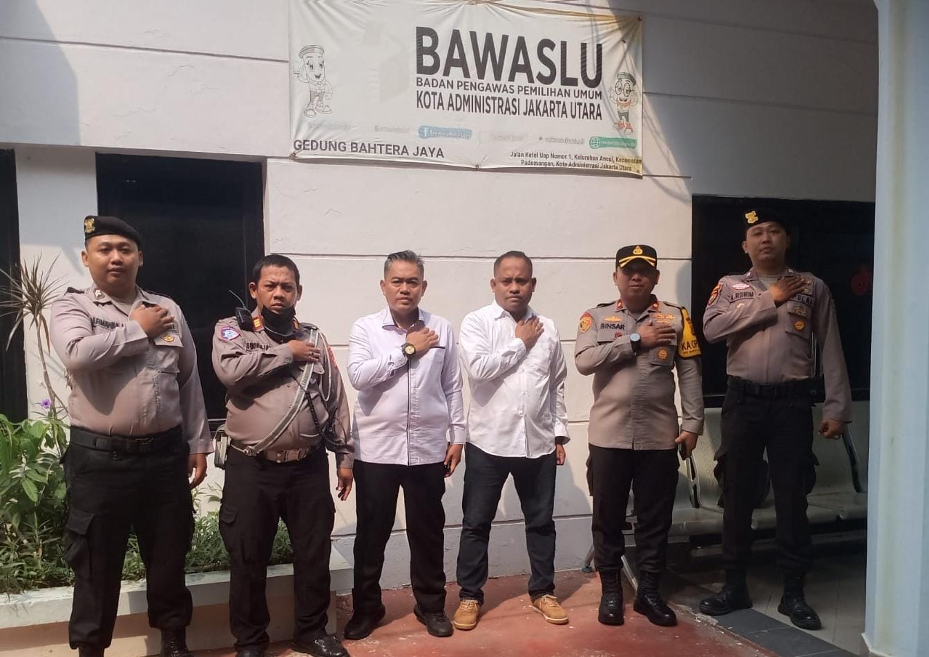 Kapolsek Pademangan, Kompol Binsar Hatorangan Sianturi, SH, SIK, MSI, melakukan pengecekan terhadap kesiapan pengamanan di kantor Bawaslu Kota Administrasi Jakarta Utara, yang terletak di Gedung Bahtera Jaya, Kelurahan Ancol, Kecamatan Pademangan, Jakarta Utara.