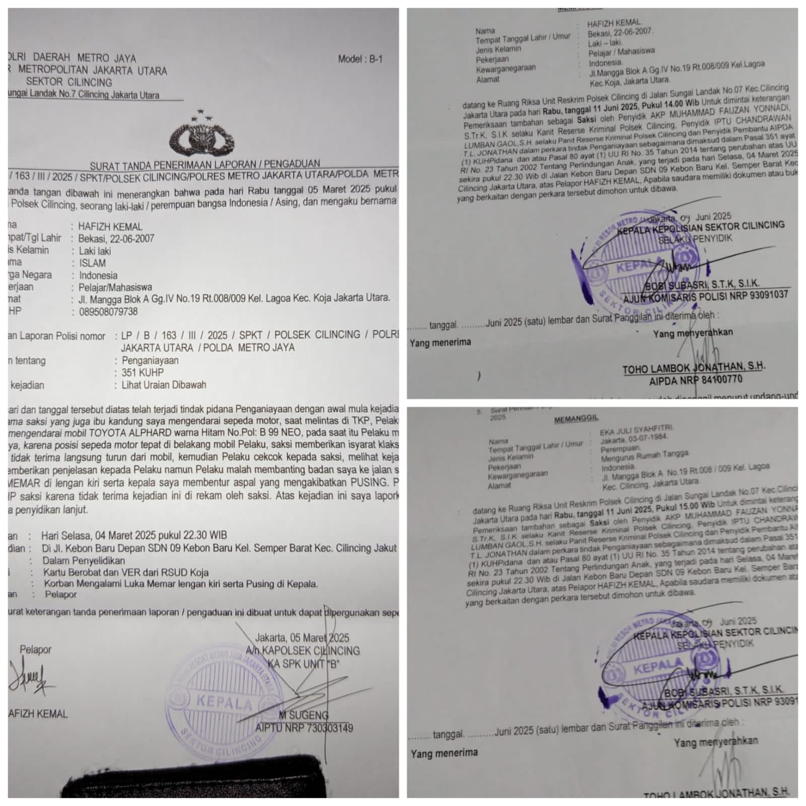 Kasus penganiayaan yang menimpa HK di Cilincing memasuki babak baru yang penuh ketidakpastian. Berkas perkara dikembalikan Kejaksaan Negeri Jakarta Utara karena belum lengkap, sehingga HK dan ibunya kembali dipanggil Polsek Cilincing pada Rabu, 11 Juni 2025. Laporan Polisi bernomor LP/B/163/III/2025/SPKT/POLSEK CILINCING/POLRES METRO JAKARTA UTARA/POLDA METRO JAYA menjerat pelaku dengan Pasal 351 KUHP.