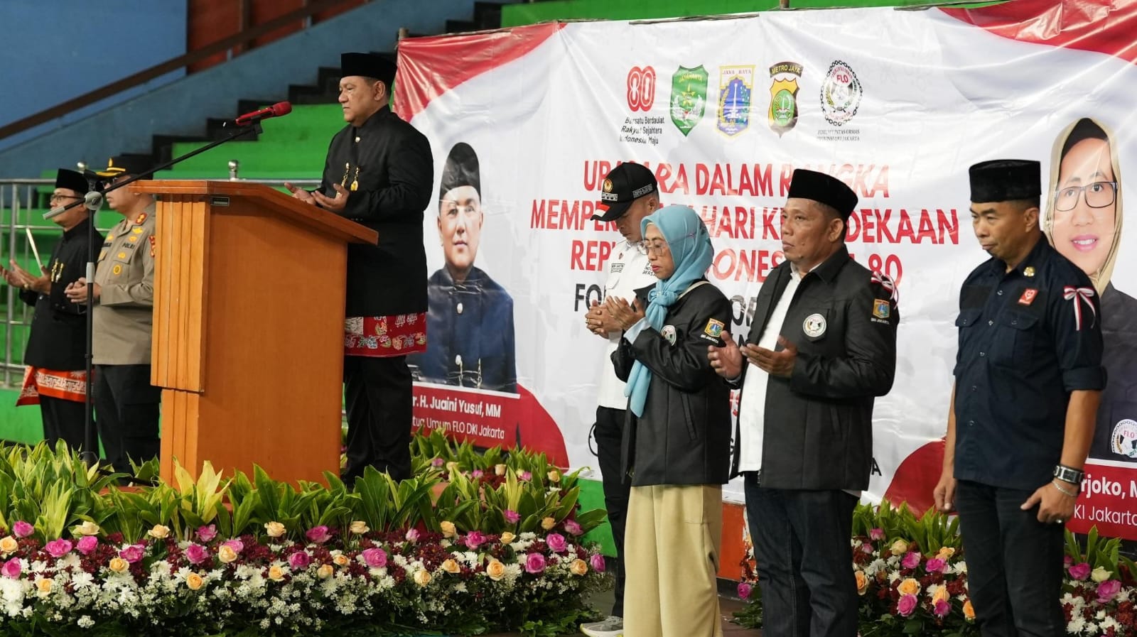 Dalam rangka peringatan HUT Kemerdekan RI ke 80 tahun, gabungan Organisasi Masyarakat yang tergabung di Forum Lintas Ormas (FLO) DKI Jakarta melaksanakan Upacara Bendera yang dilaksanakan di Gedung Olahraga Jakarta Utara, Minggu, (17/08/2025).