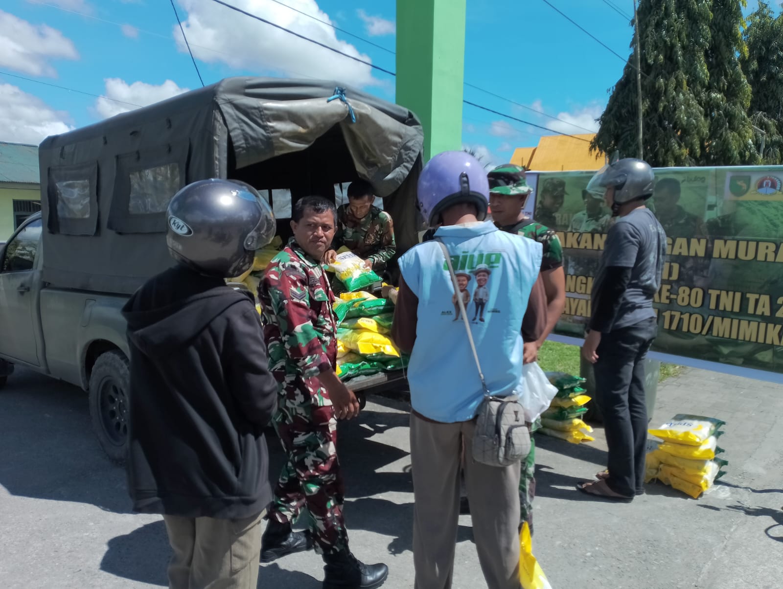 Kodim 1710/Mimika menggelar Gerakan Pangan Murah di Koramil 1710-02/Timika, Jl. Yos Sudarso, Distrik Mimika Baru, Kabupaten Mimika, Rabu (17/09/2025). Acara ini bertujuan untuk menstabilkan harga komoditas pangan khususnya beras selaku makanan pokok, serta membantu masyarakat mendapatkan bahan pokok dengan harga terjangkau.