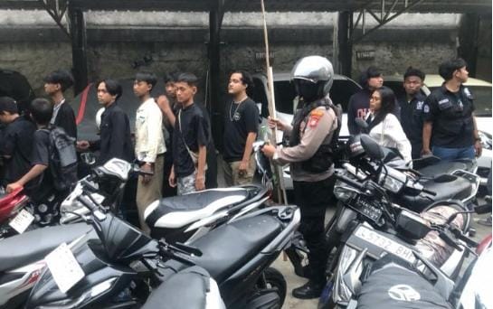 Tim Patroli Perintis Presisi Polres Metro Jakarta Barat mengamankan sekitar 200 remaja yang melakukan konvoi sambil mengibarkan bendera dan membakar petasan di Jalan Bojong Raya, Rawa Buaya, Cengkareng, Jakarta Barat, pada Rabu (26/3/2025) sekitar pukul 17.30 WIB.