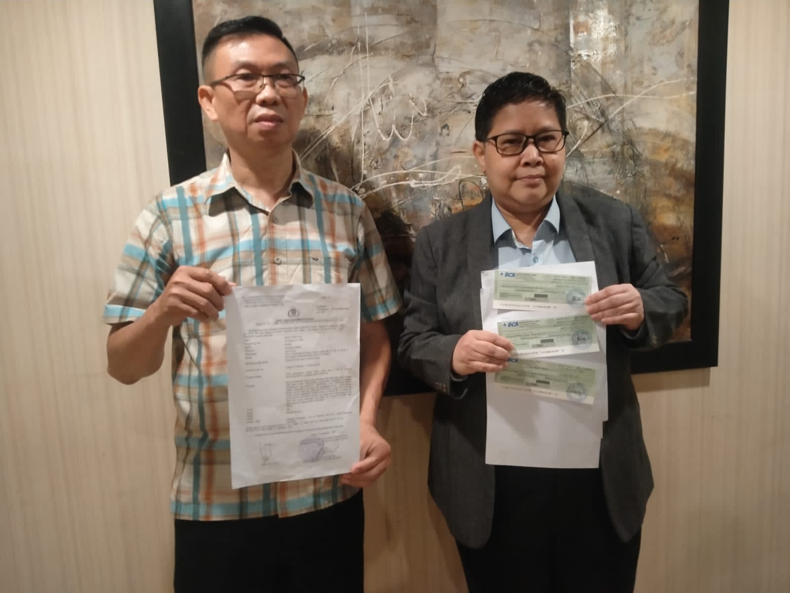 Menurut kuasa hukum HF, Nancy Yuliana Sanjoto, S.H., penipuan tersebut adalah bilyet giro sejumlah 3 lembar dan dua sudah diajukan ke bank cuma ditolak.