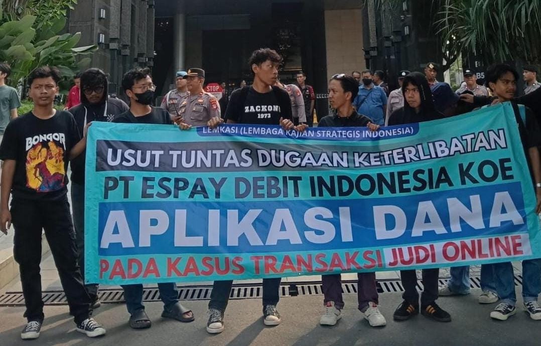 Pantauan media, puluhan massa tiba di depan gedung Capital Place atau Kantor DANA sekitar pukul 15.00 WIB. Dalam aksinya terlihat mereka membentangkan spanduk yang bertuliskan “USUT TUNTAS DUGAAN KETERLIBATAN PT ESPAY DEBIT INDONESIA KOE (APLIKASI DANA) PADA KASUS TRANSAKSI JUDI ONLINE”.