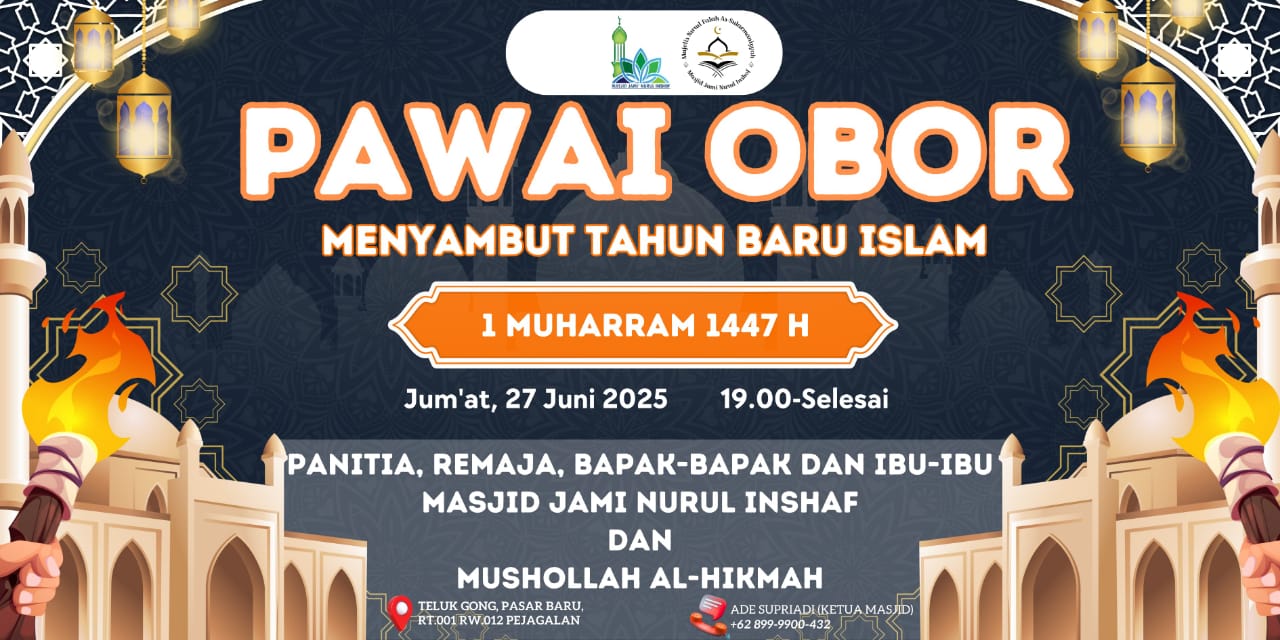 Pawai obor kali ini diikuti oleh segenap warga masyarakat Rt/Rw 001/012, termasuk gabungan dari jemaah masjid Jami nurul Inshof , mushola Al hikmah, dan majelis Nurul Falah As sulaemaniyyah yang ada di kelurahan Pejagalan kecamatan Penjaringan Jakarta Utara. Jum at, 27 Juni 2025.
