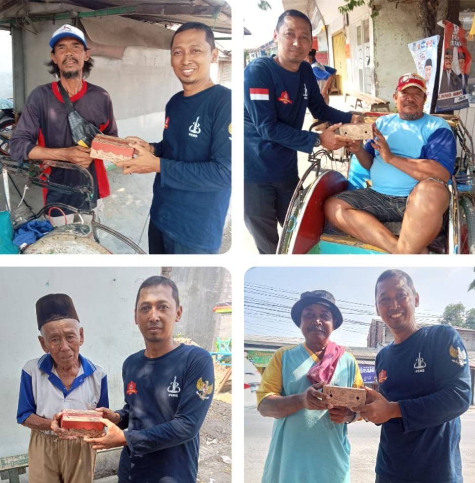 – Giat Kedua membagikan nasi box kepada para tukang becak, tukang parkir dan masyarakat disekitar kantor perwakilan redaksi MJB di wilayah Cirebon Jawa Barat.