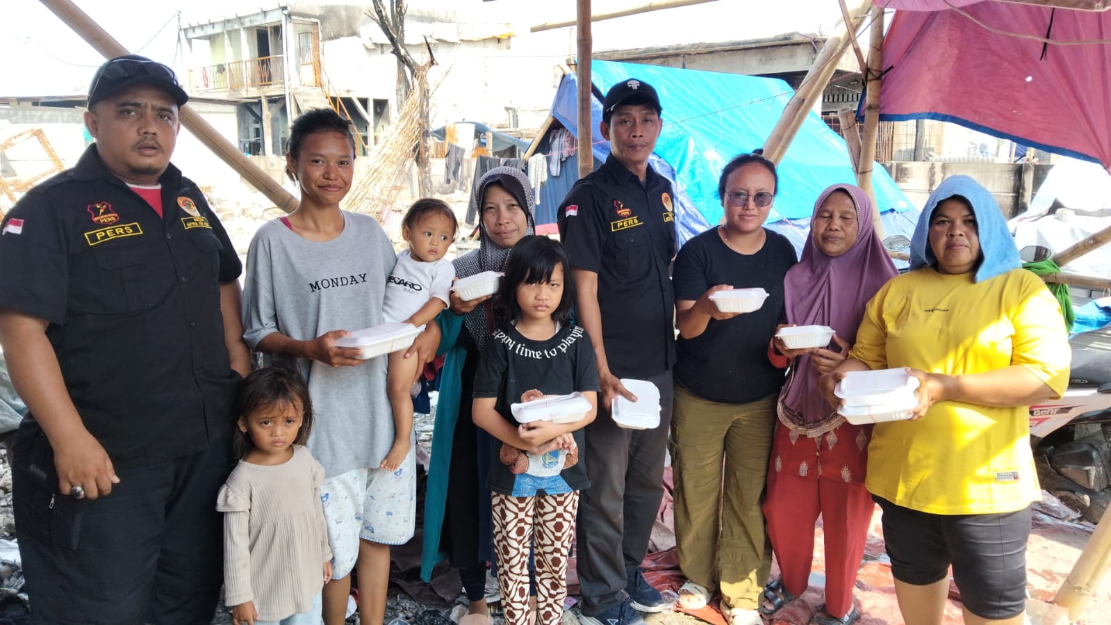 Biro daerah khusus jakarta media mitratnipolri.co.id bagikan nasi box ke korban kebakaran di rawa indah kelurahan Kapuk Muara kecamatan Penjaringan Jakarta Utara. Jum at, 04 Juli 2025.