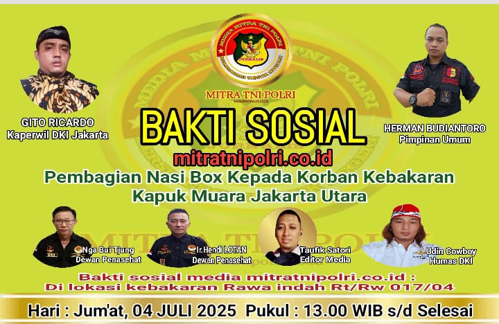 Biro daerah khusus jakarta media mitratnipolri.co.id bagikan nasi box ke korban kebakaran di rawa indah kelurahan Kapuk Muara kecamatan Penjaringan Jakarta Utara. Jum at, 04 Juli 2025.