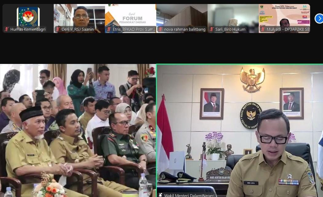 Penegasan ini disampaikan Bima saat mewakili Menteri Dalam Negeri (Mendagri) dalam Musyawarah Perencanaan Pembangunan (Musrenbang) Rencana Kerja Pemerintah Daerah (RKPD) Provinsi Sumbar yang digelar secara hybrid dari Kantor Pusat Kementerian Dalam Negeri (Kemendagri), Jakarta, Selasa (15/4/2025).