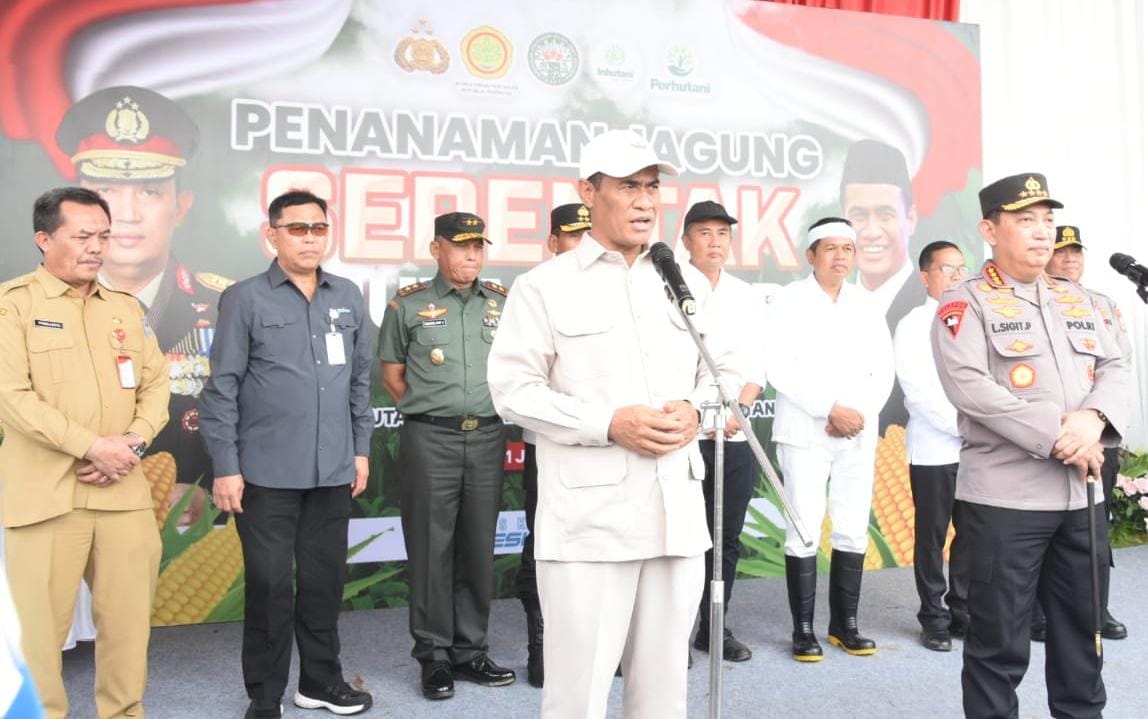 Program penanaman jagung serentak 1 juta hektar merupakan kerja sama antara Polri dengan Kementerian Pertanian Republik Indonesia dalam rangka mendukung target swasembada pangan nasional pada tahun 2025.
