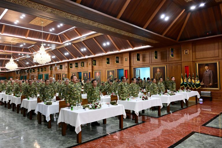 (Puspen TNI). Panglima TNI Jenderal TNI Agus Subiyanto menghadiri acara Jamuan Makan Malam Kabinet Merah Putih yang dipimpin langsung oleh Presiden RI Prabowo Subianto, bertempat di Ruang Makan Taruna Husein Akademi Militer (Akmil), Magelang, Jawa Tengah, Jumat (25/10/2024).