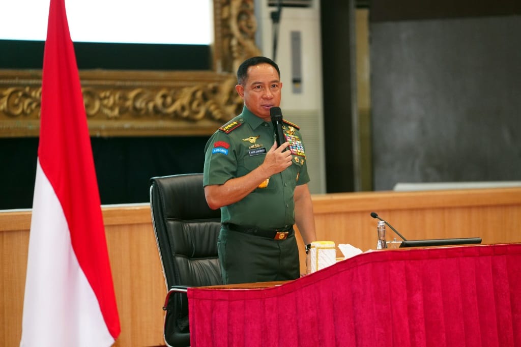 (Puspen TNI). Panglima TNI Jenderal TNI Agus Subiyanto memberikan pembekalan kepada siswa-siswi Kelas XI Angkatan ke-34 SMA Taruna Nusantara di Aula Gatot Subroto, Mabes TNI, Cilangkap, Jakarta Timur, Selasa (29/4/2025).