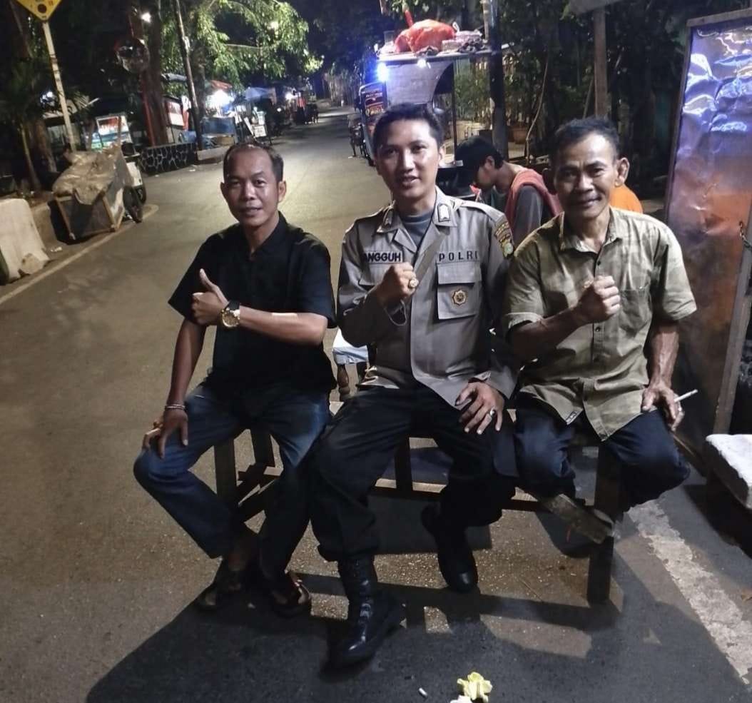 Anggota Binmas Polsek Johar Baru Bripka Tangguh, melaksanakan patroli wilayah untuk mencegah adanya gangguan kamtibmas sekaligus sambang ke pos kamling RW 12 di Jalan Tanah Tinggi XII RW 12 Kelurahan Tanah Tinggi, Kecamatan Johar Baru Jakarta Pusat, pada Jumat (11/10/2024) dini hari.
