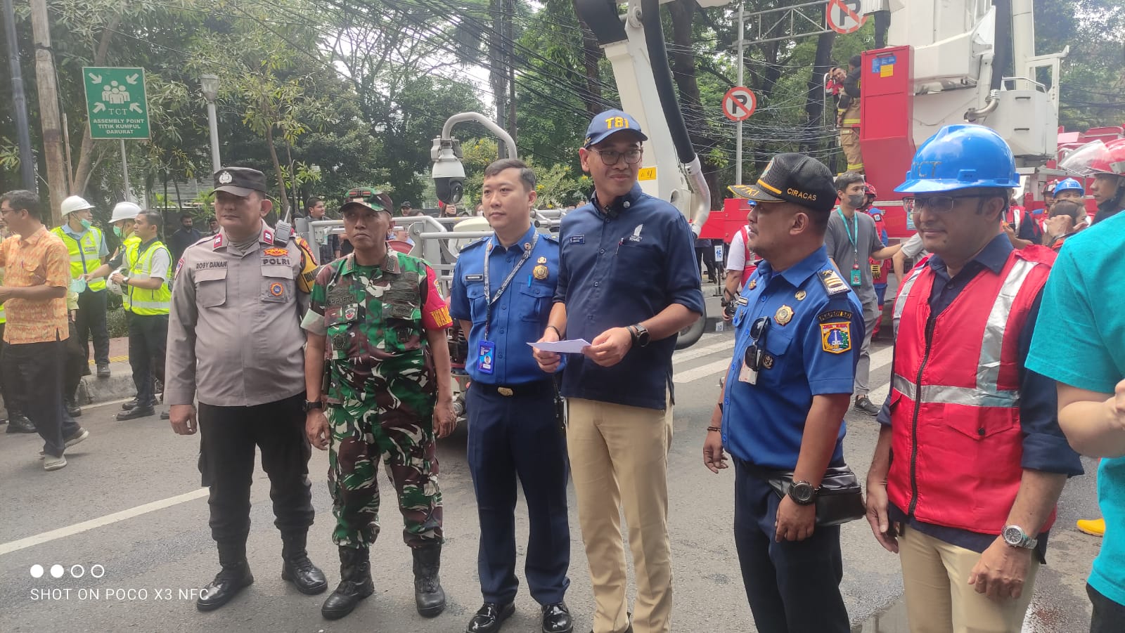 Kapolsubsektor Blora Aiptu Heru Wicaksono dan Aipda Dadang Serta Bhabinkamtibmas Menteng Aiptu Robby Danan Jaya Dan Dari Koramil Menteng Kapten Arh. Suprapto dan Anggota Babinsa Menteng Serda Suyitno melaksanakan pengamanan dan pemantauam kegiatan Latihan Evakuasi Keadaan Darurat dan Pemadam Kebakaran di Gedung TCT Jalan Mh. Thamrin Kelurahan Menteng Kecamatan Menteng Jakarta Pusat. Rabu (18/9/2024).