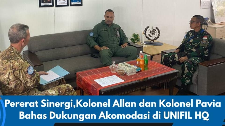 Rabu, (30/04/2025) – Komandan Satgas FHQSU XXVI-Q, Kolonel Inf Allan Surya Lesmana, S.Sos., menerima kunjungan Colonel Pavia, TFitair-Co UNIFIL, di Kantor FHQSU Naqoura.