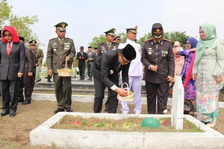 Bersama unsur Forkopimda, Pj Bupati Cirebon melanjutkan rangkaian peringatan Hari Pahlawan ke-79 dengan melakukan ziarah nasional ke Taman Makam Pahlawan Cakrabuana, Kelurahan Gegunung, Kecamatan Sumber.