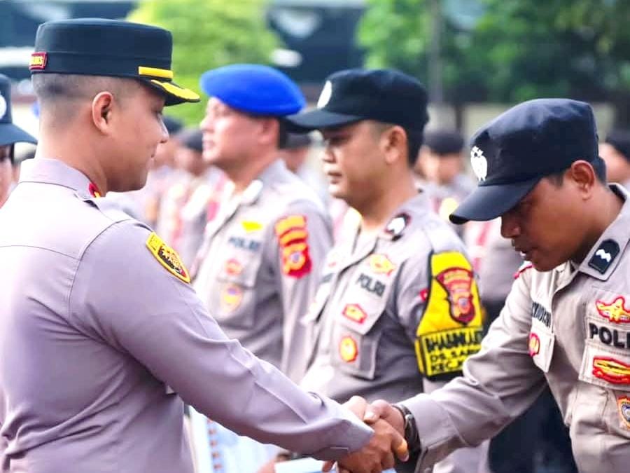 Dua personil berprestasi Polsek Kotabaru Polres Karawang Polda Jawa Barat mendapat penghargaan dari Kapolres Karawang Akbp Fiki Novian Ardiansyah, S.H., S.I.K., M.K.P., M.Si.,  setelah pelaksanaan upacara Korps Raport Kenaikan Pangkat Pengabdian yang berlangsung di Lapangan Apel Mapolres Karawang, Selasa (10/06/2025).