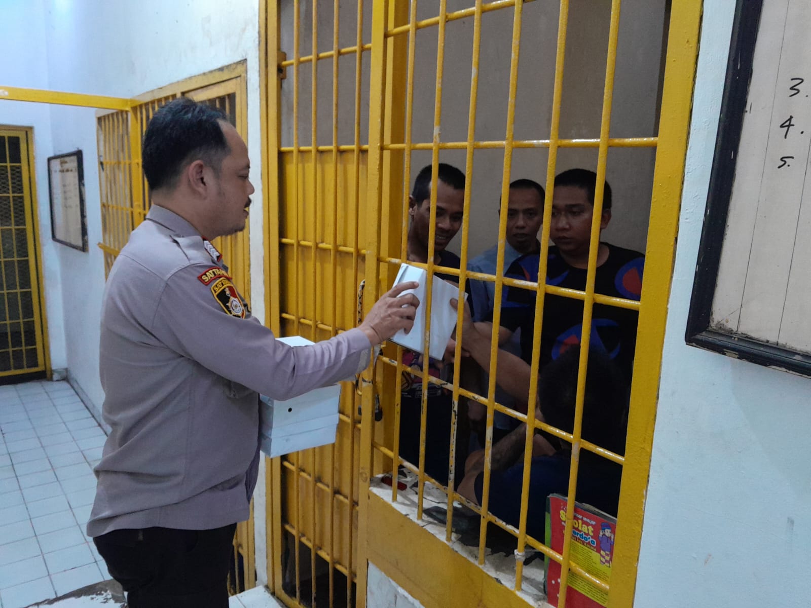 Wujud kepedulian polisi terhadap penghuni tahanan, selain melaksanakan pengecekan, personil Jaga Tahanan Bripka Tedy melaksanakan baksos wujud dari bakti sosialnya personil dan rasa peduli kemanusiaan, personil berikan makan kepada penghuni tahanan guna menjaga stamina dan kesehatan tahanan.