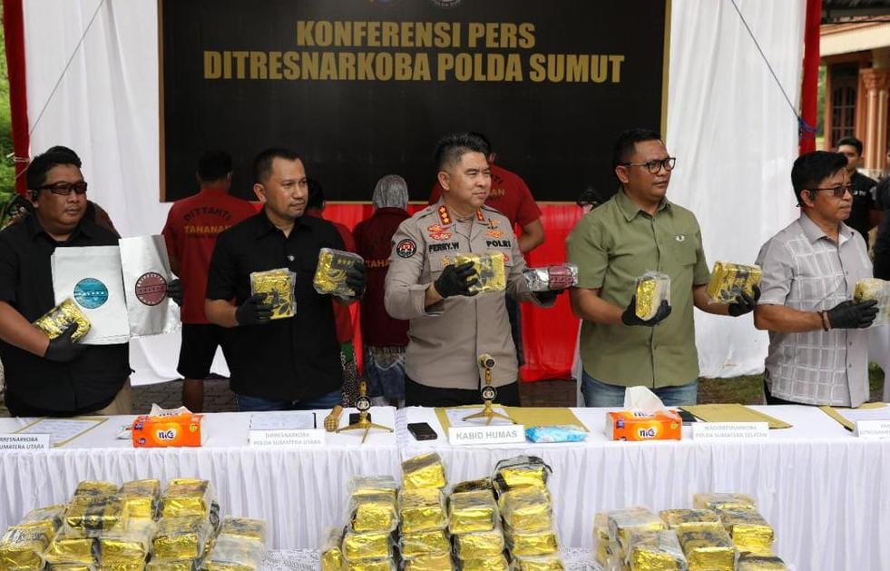 Pengungkapan ini disampaikan dalam konferensi pers di Komplek Tasbih, Medan, Sabtu (17/5/2025), dipimpin Direktur Resnarkoba Polda Sumut Kombes Pol Jean Calvijn Simanjuntak bersama Kabid Humas Kombes Pol Ferry Walintukan dan Wadirresnarkoba.
