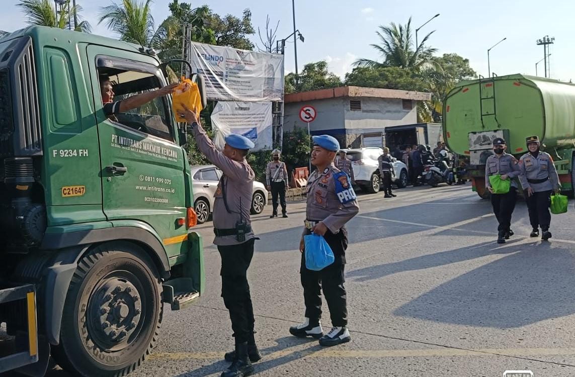 Polres Pelabuhan Tanjung Priok, bangun solidaritas sosial masyarakat terutama Sopir di Pos 9 Pelabuhan Tanjung Priok, lewat kegiatan bakti sosial dengan membagikan bantuan paket sembako kepada para sopir.