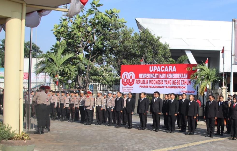Polres Pelabuhan Tanjung Priok Gelar Upacara HUT ke – 80 RI dengan Khidmat & Penuh Nasionalisme