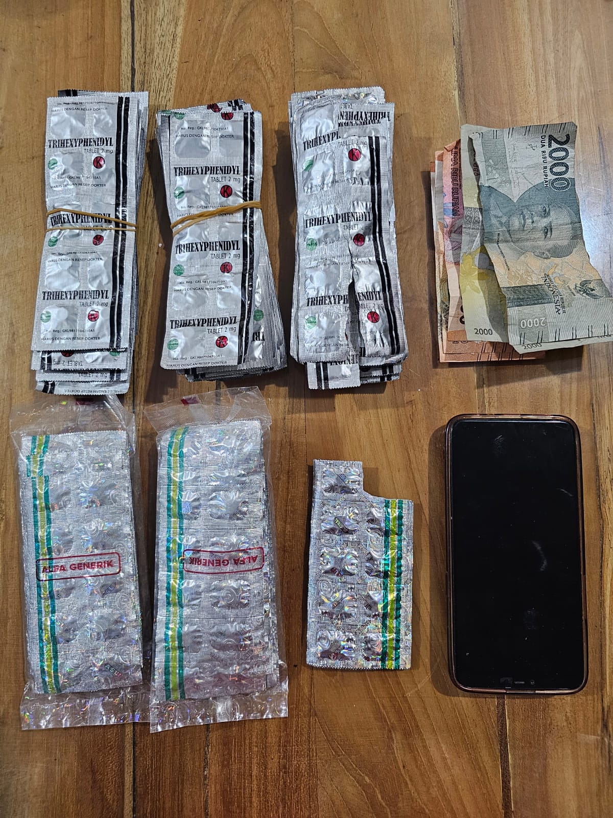 Petugas pun berhasil mengamankan sejumlah barang bukti dari tangan NY dan SH yang kini telah ditetapkan sebagai tersangka. Diantaranya, 506 butir berbagai jenis OKT, uang tunai hasil penjualan senilai Rp 21 ribu, 2 unit handphone, kantong plastik, dompet dan lainnya.