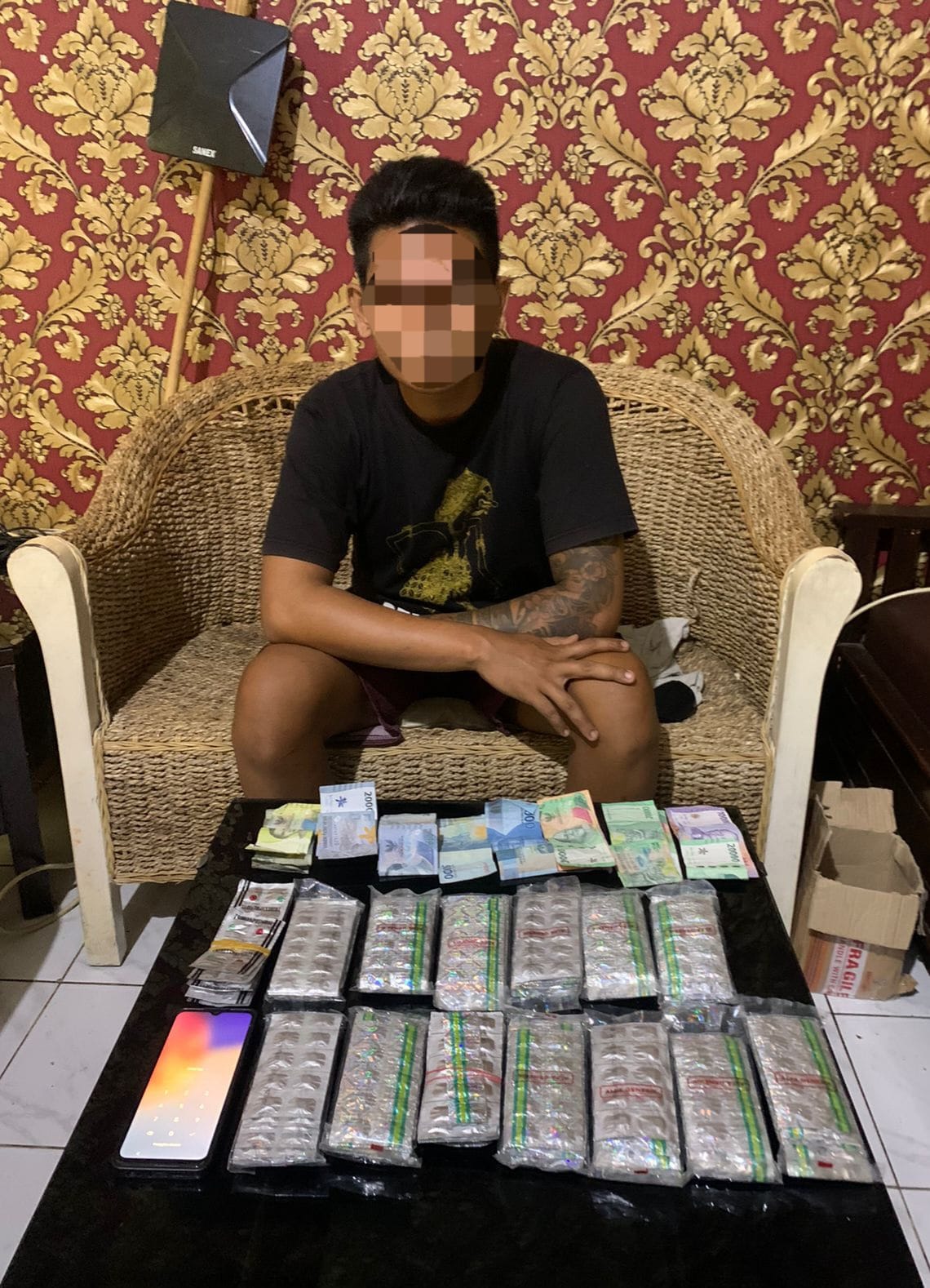 Petugas pun berhasil mengamankan sejumlah barang bukti dari tangan SB. Diantaranya, 1381 butir berbagai jenis OKT, uang tunai hasil penjualan senilai Rp 375 ribu, handphone, dan lainnya.