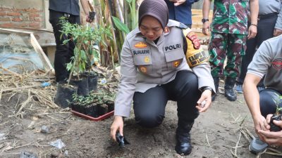 “Alhamdullilah, hari ini saya bisa berkunjung ke Desa Trusmi Kulon dan langsung tatap muka dengan masyarakat untuk membagikan bibit cabai, bibit ikan, serta bioflok dalam rangkaian Polisi Penggerak Program Pekarangan Pangan Bergizi Masyarakat,” katanya