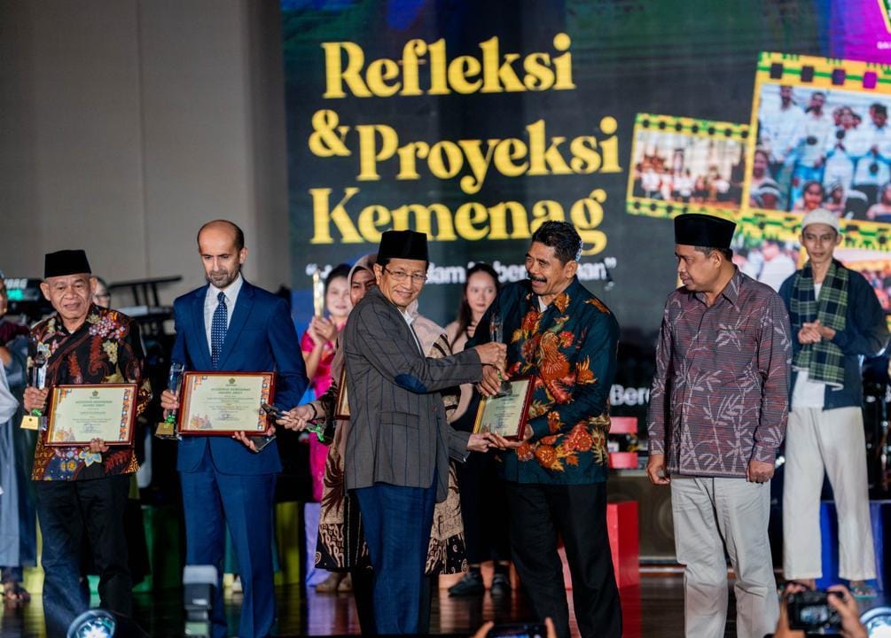 “Refleksi dan Proyeksi Kemenag 2025” dimerihkan dengan pemberian penghargaan atas best practice penguatan moderasi beragama. Menag memberikan penghargaan tersebut kepada 10 instansi yang berperan besar dalam penguatan kerukunan antar umat beragama, yaitu UHN I Gusti Bagus Sugriwa Denpasar, Institut Teknologi Bandung, Universitas Andalas Padang, UIN Saifuddin Zuhri Purwokerto, Kemenko PMK, Kemendagri, Pemprov Sulawesi Barat, Pemkab Pemalang, Kedubes Uni Emiret Arab, dan Kanwil Kemenag Maluku Utara. Para penerima penghargaan ini dinilai sebagai yang terbaik dalam implementasi penguatan program moderasi beragama