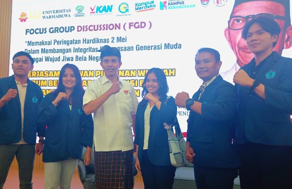 Dewan Pimpinan Wilayah (DPW) Forum Bela Negara (FBN) Provinsi Bali bersama Kampus Kebangsaan Warmadewa menyelenggarakan FGD yang dihadiri oleh sejumlah mahasiswa melalui Badan Eksekutif Mahasiswa (BEM) dari berbagai Perguruan Tinggi di Bali.