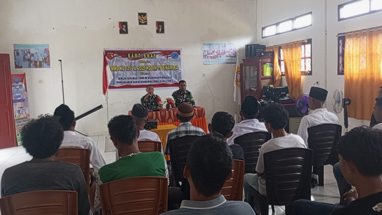 Satgas TNI Manunggal Membangun Desa (TMMD) Kodim 1506/Namlea melaksanakan kegiatan sosialisasi tentang Keamanan dan Ketertiban Masyarakat (Kamtibmas) di Desa Hote, Kec. Waesama, Kab. Buru Selatan, Senin (18/08/2025). Kegiatan ini merupakan bagian dari program non fisik TMMD yang bertujuan untuk meningkatkan kesadaran masyarakat terhadap pentingnya keamanan lingkungan serta mempererat hubungan antara TNI dan masyarakat.