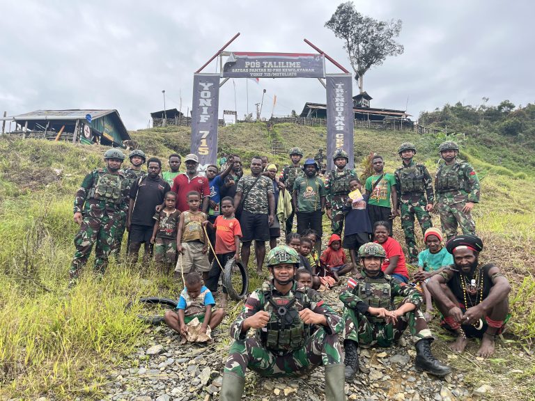 Papua Tengah | Pos Talilime Satgas Pamtas Kewilayahan Yonif 715/Mtl dalam rangka memperingati hari Natal 2024 melaksanakan Gotong royong dan makan bersama guna mempererat tali silaturahmi antara personel Pos dengan masyarakat sekitar Pos Talilime Distrik Mulia Puncak Jaya, Papua Tengah, Senin (30/12/2024).
