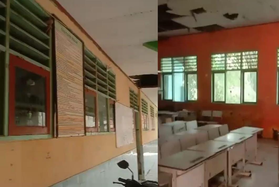Sejumlah ruang kelas mengalami dinding retak, atap plafon berlubang, serta pintu yang rusak. Kondisi ini menimbulkan kekhawatiran akan keselamatan siswa dan guru yang setiap hari beraktivitas di sekolah tersebut.