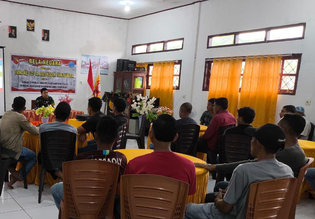 Dalam rangka meningkatkan kesadaran dan partisipasi masyarakat dalam menjaga keutuhan dan kedaulatan negara, Kodim 1506/Namlea melalui program TNI Manunggal Membangun Desa (TMMD) ke-125 melaksanakan sosialisasi Bela Negara di Desa Hote, Kecamatan Waesama, Kabupaten Buru Selatan, Senin (28/07/2025).